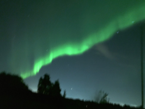 私はフィンランドでも北のほうに位置するオウルに留学しています。北のほうで、かつ運がよかったこともあり、来てから6回ほどオーロラを見ました。初めて見た日はこのあたりでも初めてのオーロラだったようで、淡い色でしたが、ものすごく感動しました。オーロラが活発な日には空一面を覆うような緑の帯を見ることができました。本当にゆらゆらと動いていて、常に形が移り変わっていました。とても背が高い瞬間もあれば、帯のように長く伸びているときもあり、ずっと見ていても飽きません。すごく明るく見えていたと思ったら、すごく薄く見えなくなってしまうときもあり、とても幻想的です。来てすぐの秋のころ特に多くオーロラを見ることができました。冬はオーロラが現れるチャンスは多いですが、雲で遮られてしまいなかなか見れません。